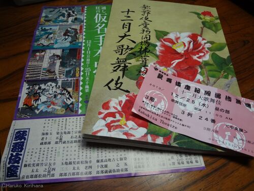 今年最後の歌舞伎の千穐楽を姉と鑑賞いたしました。 先月と同じ、通し狂言 仮名手本忠臣蔵でした。 菊之助、染五郎、七之助、幸四郎、玉三郎・・・と、役者がかわりその違いも興味深く観ました。 歌舞伎座の前で姉と待ち合わせ。 「あら素敵!そのスカーフ、…
