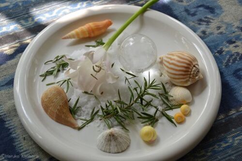 明日から八月ですね。 窓辺のコーナーを涼しげに模様替え致しました。 モイスト・ポプリの材料は、 粗塩、クリナム、ローズマリー。 貝は高知とイギリスのコーンウォールのものです。 水晶にはローズマリーのエッセンシャル・オイルをたらしました。 記憶力…