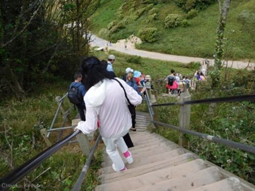 ワイト島の観光スポットのニードルポイントは、白い石灰岩がむき出しの美しい半島と小島が続く場所。先端には灯台があります。 沢山の観光客が楽しんでいました。 行きは急な坂道を歩いて行きました。 半島の先には小島が点々と続き、先端には赤い灯台があり…