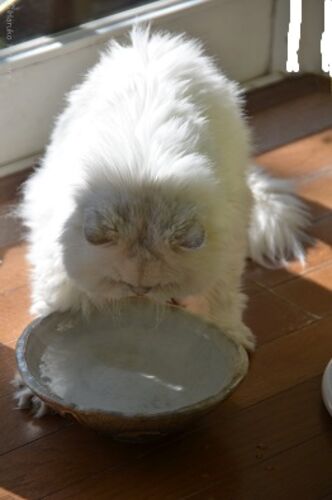 朝は晴れていましたが、少し雲が出てきました。 洗濯ものを干して室内に入ると、モヤが二階から下りてきて、水を飲んでいました。 飲むとはいってもすぐには飲まず、まずは両手の指を大きく広げて、 器の両端の床をすごい勢いでカキカキします。 やがて、手…