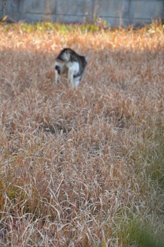 隣りの空き地で跳ね回っています。 なにか興味のある虫でもいるのでしょうか。 と思ったらスピードで戻ってきました。 車庫の上の定位置で毛づくろい。 上部に見える南隣は、整地され建売で2軒建つそうで、2,680万円よりとの張り紙が張られました。もちろん…