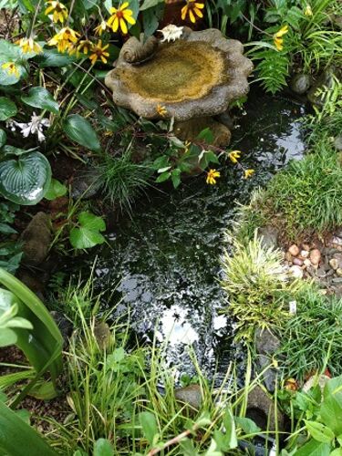小さな心字池。周りの石を整え、伸びていた植物を剪定しました。 ポリの池なのに、少しの工夫で自然風に。年月を経てますます良い感じで気に入っています。 先日はトンボが産卵。 メダカが増えて驚くほどの数に。 花友陶芸友のJさんにいただいたブラシでカキ…