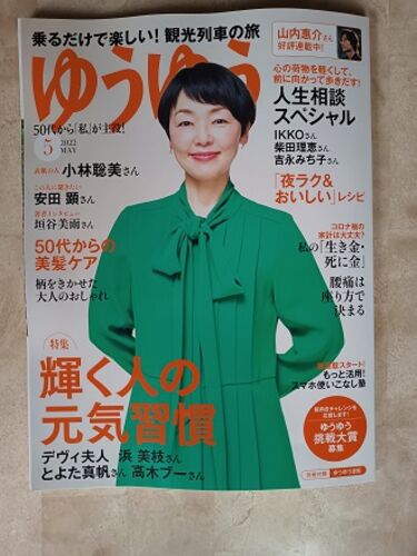 主婦の友社「ゆうゆう」5月号は、小林聡美さんの明るく健やかな姿の表紙、元気をいただきました。 特集は「輝く人の元気習慣」などなど、内容豊富で役立つ情報が満載です。 私の連載の今月のテーマは、スイートバイオレットです。 丁度庭では花盛りの大好き…