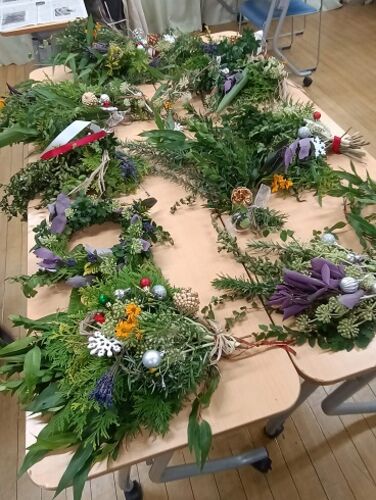 本日は、月一回、よみうりカルチャー錦糸町のハーブ教室でした。 午後12時45分から2時30分です。 いつもの矢田ファームにハーブのスワッグの材料注文をし、私の庭からもハーブいろいろをお持ちしました。 香り一杯の中、スワッグづくり。 半月型のリースやリ…