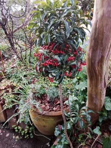 マンリョウが色づいてきて美しいです。 昨日の完成したウェルカムガーデン、朝の光の中で撮影。 今朝はシェイクスピアガーデン部分の手入れをしました。 土をほぐし、雑草を抜きました。 水仙の芽が少し出ていました。 シェイクスピアの作品に登場するハーブ…