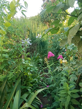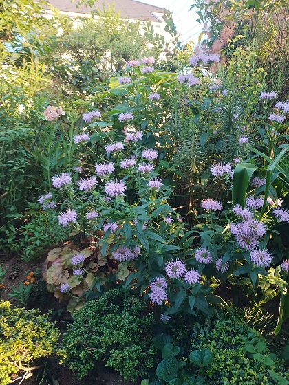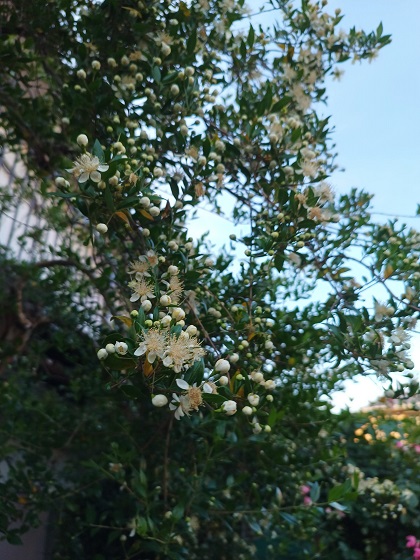 2022-06-28 マートルが咲き始めました 庭には何本ものマートルを植えています。 それらが咲き始めました。 古代ギリシア時代から花嫁のリースに使われていた、愛を象徴するマートル。 日本では「祝いの木」とも呼ばれています。 ほんのりとあまい香りもします。 南側の小径にはフロックスやアガパンサスが咲き始めました。 モナルダが優しい色合いで咲き誇っています。
