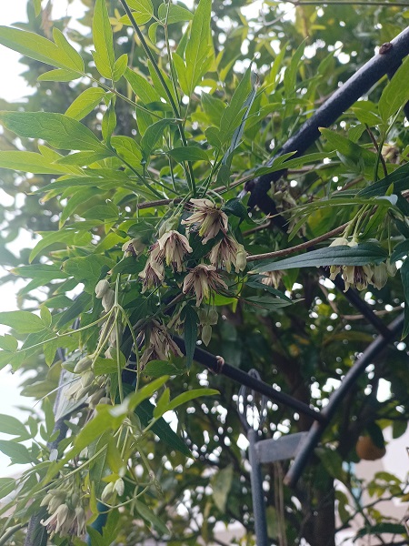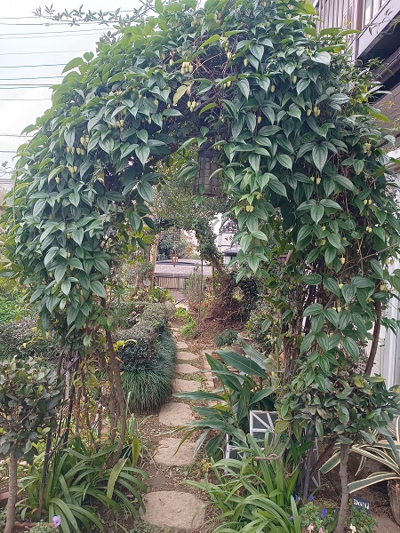 東側のアーチに絡ませている、クレマチスのナパウレンシスが昨日もう咲いていました。