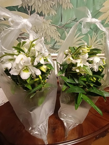 2021年より育てて満足だったので、先日購入し花友J子さんにプレゼントさせていただいた白い蘭。