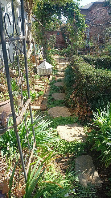 夫と頑張って植えた歩く場所をじゃましない、植物たちです。