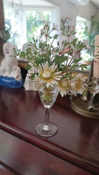 白タンポポと、センティッドゼラニウムのオールドスパイスも加えていただきました。