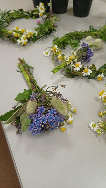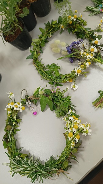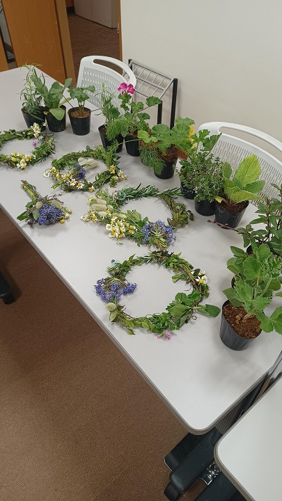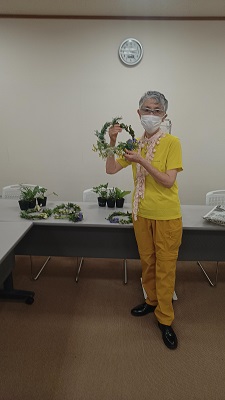 苗の説明の後は、ワイヤを使用する小さなリースを作りました。