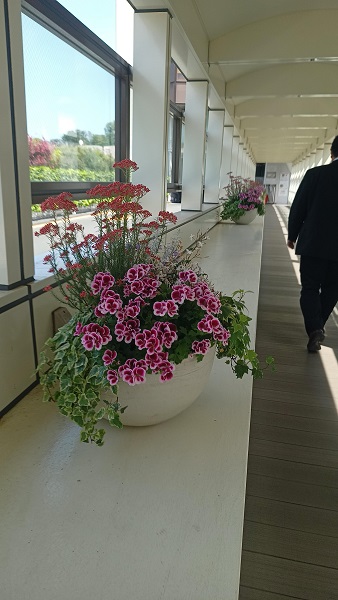 その先の寄せ植え。この先工事中になっていて、右側のエレベーターで移動。