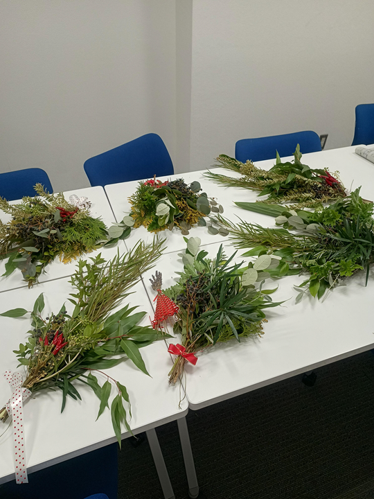 沢山のハーブ材料で、スワッグ作りをしました。
