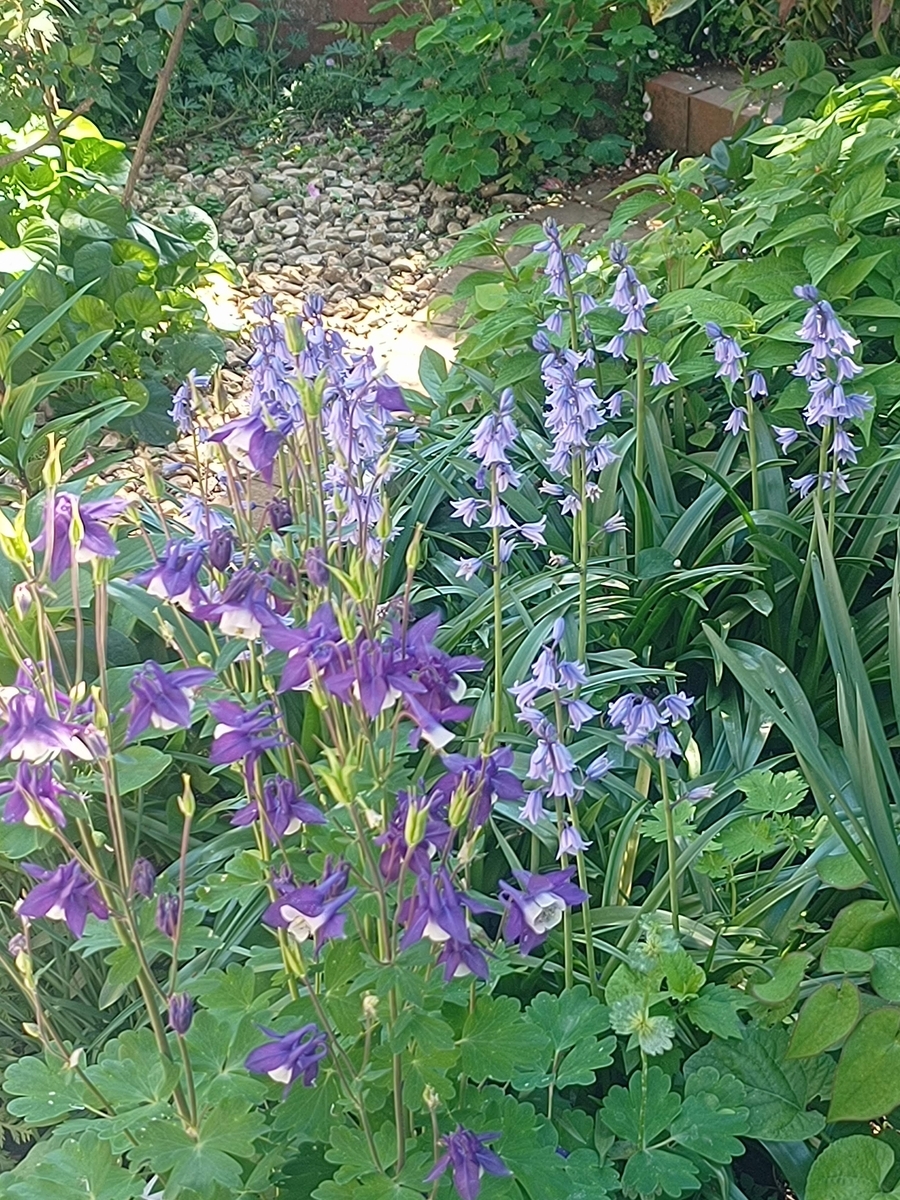 オダマキとブルーベルがグングンと伸びてきました。