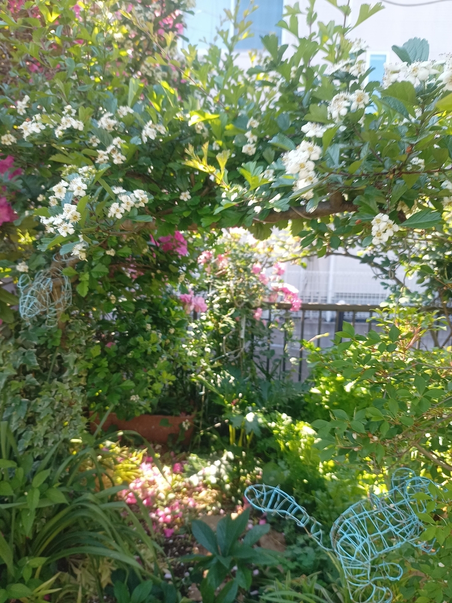 始めは小さな盆栽で購入したサンザシでした。今では地植えのアーチとして楽しんでいます。可憐な白い花は悪臭がします。