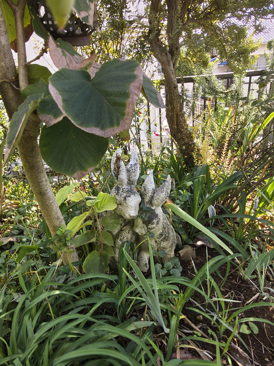 斑入りアガベ、仲良しウサギ